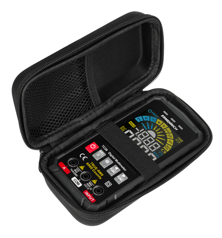 Az Ermenrich Zing TC26 digitális multiméter egy True RMS elektromos mérőeszköz, mely feszültségmérési, áramerősség-mérési, ellenállásmérési, frekvenciamérési, kapacitásmérési, munkaciklusmérési és hőelemes funkciókkal rendelkezik. True RMS alapján számítja ki a változókat, ezért rendkívül pontos.