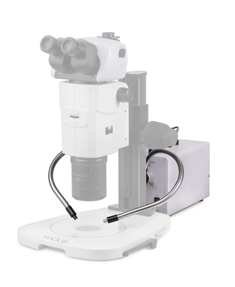 A fényforrás a lámpabúrában található. A fényáram a rugalmas kettős fényvezetőn keresztül éri el az objektumot. A fényvezető pozíciója a kívánt fényszög kialakításához állítható, így elérhető a kutatáshoz szükséges fény és árnyék. Megtartja előre beállított alakját, nem kell rögzíteni.