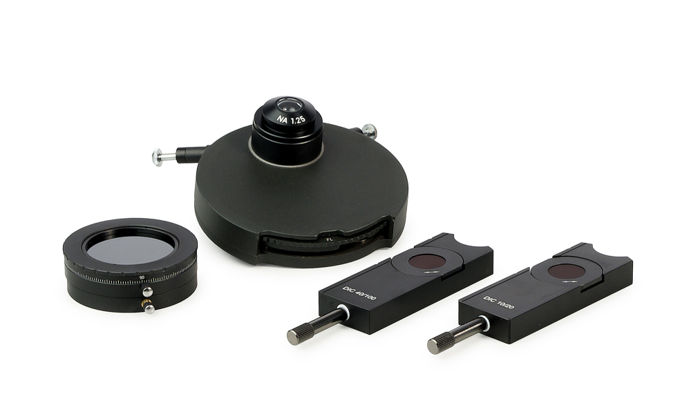 A differenciál interferencia kontraszt eszközben egy DIC-kondenzor, egy polarizációs szűrő, valamint DIC-csúszkák találhatók.