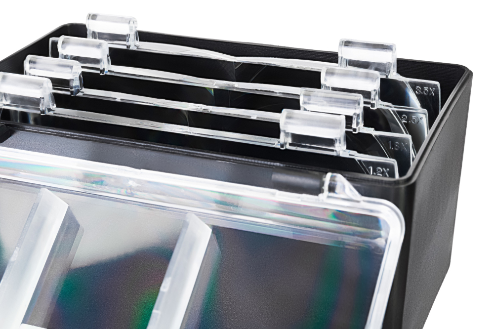 | Nagyítás foka, x | 1,2/1,8/2,5/3,5 (a lencsék egymással kombinálhatók) |