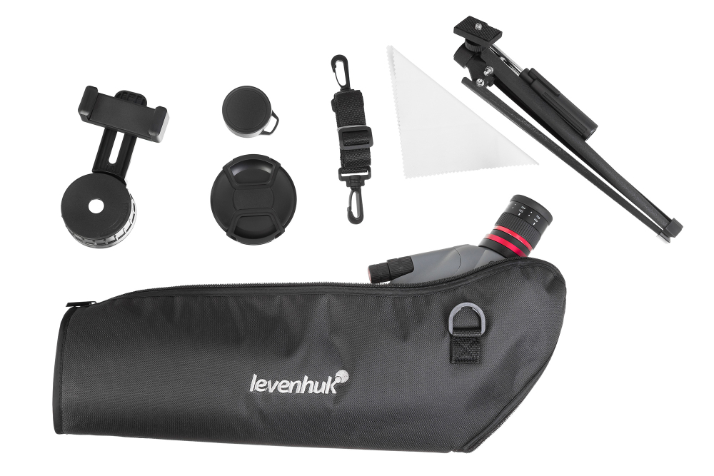 Ossza meg felfedezéseit a szeretteivel! A mellékelt okostelefon-adapterrel közvetlenül a figyelőtávcsövön keresztül készíthet fényképeket és videókat. A figyelőtávcső a szabványos, 1/4"-es rögzítőmenettel bármilyen háromlábú állványhoz csatlakoztatható, amely elbírja a figyelőtávcső súlyát. A készletben a fémből készült asztali háromlábú állvány mellett egy okostelefon-adapter, egy hordtáska, objektív- és szemlencse-védősapkák, valamint egy lencsetisztító kendő is található.
