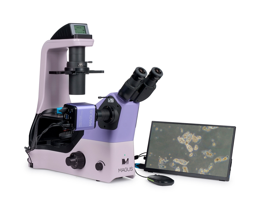 Kutatási célú mikroszkóp. A mikroszkópot kicsapódott folyadékok, sejtkolóniák, élő sejtek, szövetkultúrák, valamint egyéb festett és nem festett minták laboratóriumi üvegárukban történő tanulmányozására terveztük. A mikroszkópot a fordított kialakításának köszönhetően Petri-csészékkel, soküreges lemezekkel, fiolákkal, hengeres palackokkal és 1,2 mm fenékvastagságú, legfeljebb 75 mm- lombikokkal is lehet használni. A mikroszkóp speciális objektíveket használ az ilyen üvegedényekkel való munkához. A kondenzor eltávolításával megfigyelhetők a sejttenyészetek Petri-csészékben vagy legfeljebb 187 mm magas hengeres lombikokban. A mikroszkóp 8 MP-es kamerával és három videojel-továbbító csatlakozóval rendelkezik: HDMI, USB 3.0 és Wi-Fi. Egyszerre több eszközhöz is lehet csatlakoztatni: monitorhoz, laptophoz és asztali számítógéphez. A kamera a mikroszkóphoz a mellékelt 0,5x vagy 1x adapter segítségével csatlakoztatható. Az adapter kiválasztása a megoldandó feladatoktól függ. A 0,5x adapter növeli a látómezőt, míg az 1x adapter a képet "változatlanul" továbbítja, az élek levágásával, ugyanakkor minden részlet nagyobbnak látszik az érzékelőn. A szoftver elemzési és dokumentációs funkciókkal egészíti ki a rendszert. A digitális mikroszkópban található monitor 4K felbontású. A megfigyelések áteső fényben, világoslátóterű, fáziskontraszt és dombor-kontraszt technikák alkalmazásával lehetségesek. Opcionális komponensek lehetővé teszik a Hoffman modulációs kontraszt technikák alkalmazását is. A mikroszkóp az orvostudomány, a farmakológia, a biológia és a virológia területén zajló kutatásokra szolgál.