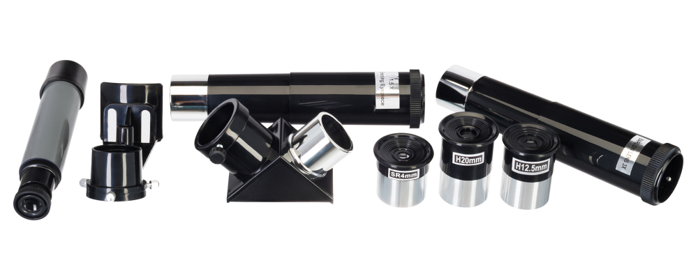 | Szemlencsék | SR4 mm (175x), H12,5 mm (56x), H20 mm (35x), 1,5х felfelé álló szemlencse |