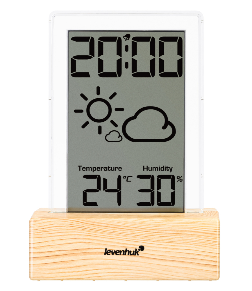 Mivel a Levenhuk Wezzer BASE L60 elemről működik, nem kell a hálózathoz csatlakoztatni és így vezetékek sem fognak a padlón futni. A páratartalomra és a hőmérsékletre vonatkozó értékek mellett a berendezés az öt időjárás-előrejelzési ikon egyikét is képes megjeleníteni. A kijelző tetején nagy számjegyeket megjelenítő óra található, amely távolról is jól leolvasható. Ez az okoseszköz könnyedén válhat az éjjeliszekrényen álló ébresztőóra elegáns alternatívájává. Az ébresztést szundira lehet állítani egy gomb segítségével – 5 perc elteltével fog újra jelezni.